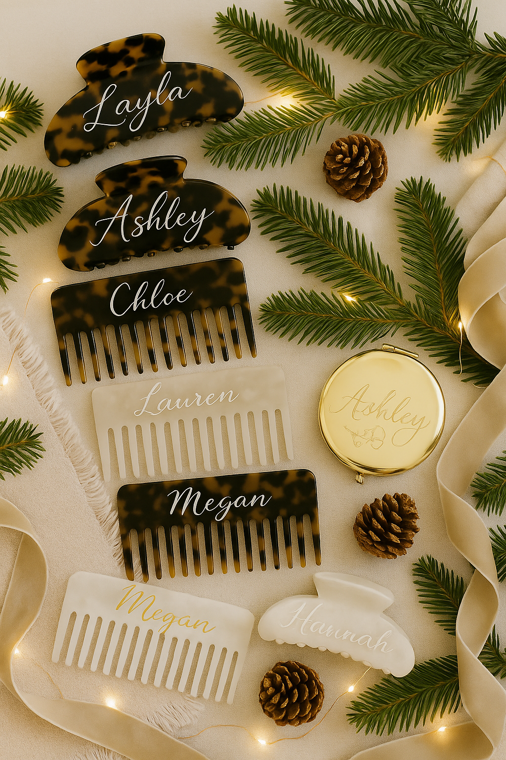 Choose between gold, rose gold, silver, black, or pink for your engraved compact mirror. Each mirror comes with its own gift box for no additional cost! Make note of personalization notes and correct spelling of the name in the box provided, thank you! Each compact comes with a count of 1 personalized name.