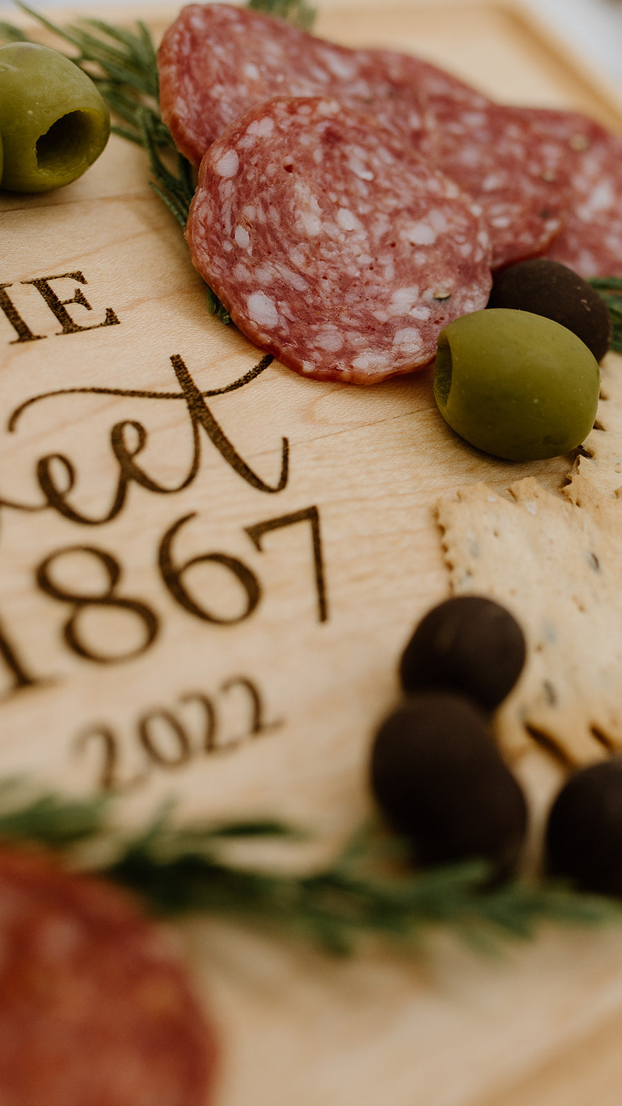 These natural high-quality cutting board makes an impeccable cutting board that duals as a gorgeous serving board! When hand lettered and artfully laser engraved, this wooden board makes a memorable wedding gift or corporate gift! Truly unique, this premium hardwood cutting board is easy to maintain and gentle on knives. Its lasting beauty makes it one of our top selling cutting boards. This Maple board features a Juice Groove decorative edge and finished with mineral oil and beeswax cutting board conditioner making it food safe!
